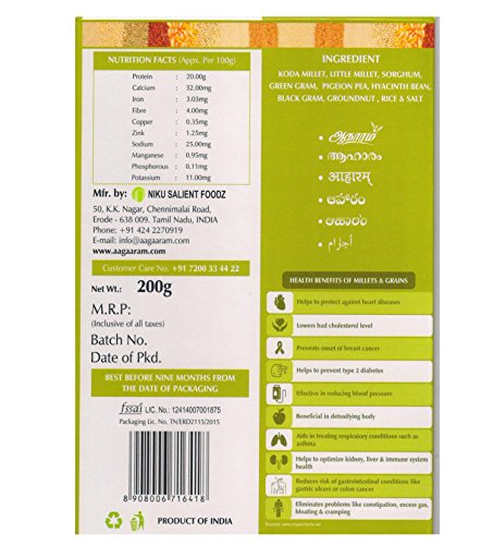 Package Contents: 1 Multi Millet Adai Dosa Mix