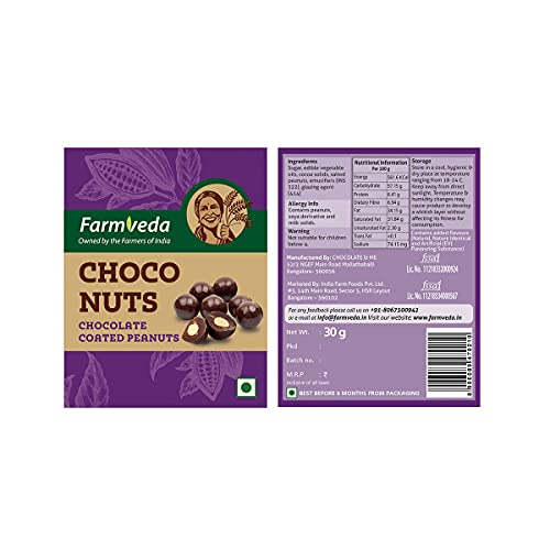 Ingredients: Peanuts, sugar, cocoa solids, edible vegetable oils, emulsifiers(INS 322), glazing agent (414)