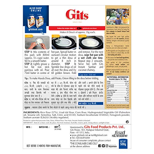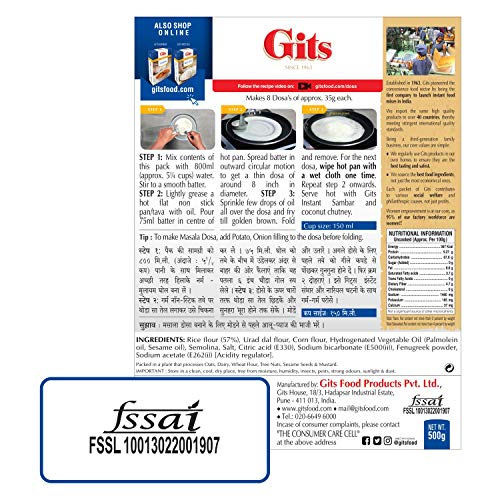 Gits Dosa is a very simple and delicious South Indian breakfast. Gits Instant Mix Dosa is the most loved and bestselling breakfast known for its crispy and crunchy dosas. To enjoy it amazing South Indian taste all you have to do is follow the 3 easy steps as mentioned on the back of the pack.
