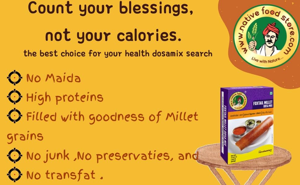Nativefoodstore Millet Dosa Instant Mix is suitable for all age groups and its help to homemakers to make great Healthy Millet dosa. Foxtail Millet Dosa Mix is made from a fine blend of Thinai millet and other ingredients that are a perfect substitute for regular rice Dosa. amazing gluten free instant mixes made of highly nutritious millet, a crop that bears small seeds and grows mainly during wet seasons. It’s a super food with numerous health and nutritional benefits. Naturally rich in essential minerals like potassium, iron, magnesium, just to name a few. Promotes a Healthy Heart: The rich content of magnesium in millet makes it an all-important food that brings down the blood pressure. It is also rich in potassium which acts as vasodilator to lower the blood pressure as well as the risk of heart attacks and therefore eating Grami Millet Cookies is a great way of promoting a healthy heart. Anti-Diabetes: The abundance of millet in most developing countries is believed to be the reason why type 2 diabetes is less frequently found in these regions. Millets contain a significant level of magnesium which plays an important role in improving the efficiency of glucose and insulin receptors in the body, thus reducing the risk of type 2 diabetes. In addition, millet also releases a lesser percentage of glucose and over a longer period of time compared to rice, lowering the risk of diabetes.
