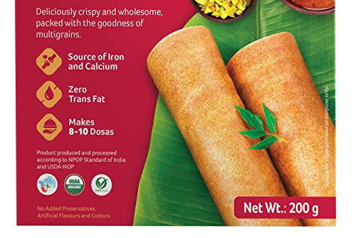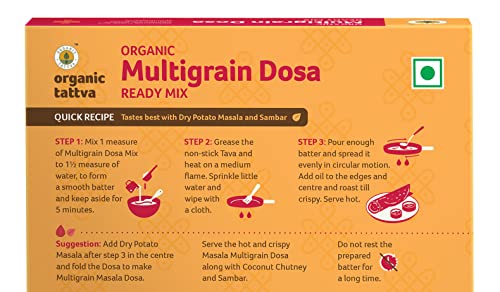 Organic Tattva’s Organic Multigrain Dosa mix is made from organic ingredients. This healthy dosa mix is based on homemade recipe and is 100% natural. Millets are gluten free, fiber, vitamins and minerals. Organic Multigrain Dosa mix is also a weight loss dosa mix, because it will help to control your appetite. Devour it as a delightful family meal or as a snack to honor taste cravings within a matter of minutes. A convenient way of including Millets in your daily meals, helping you stay fit & healthy.