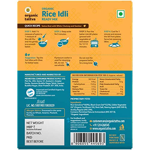 Organic rice idli ready mix, from the house of mehrotra consumer products private limited leaders in organic food products.