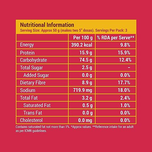 Shelf Life: 365 days; Ingredient Type: Vegetarian; Total Weight: 450 gm; Package Contents: 3 x 150 gm of Beetroot millet dosa instant mix